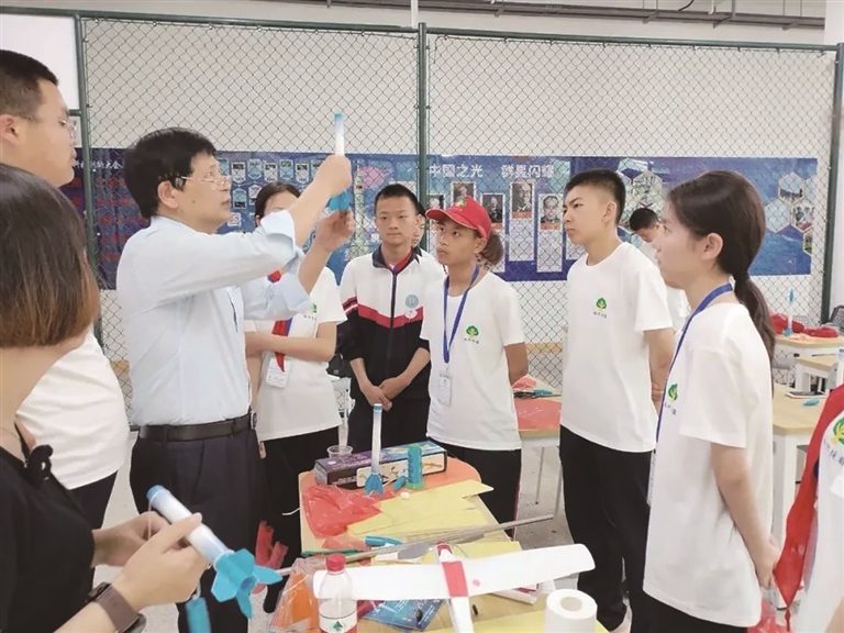 图为奇台师生们走进福州闽侯荆溪关口小学,体验科普航模课程。□顾晓玲摄