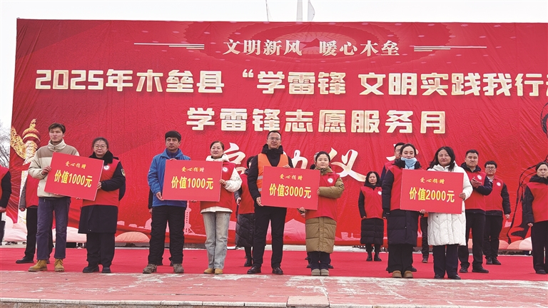 3月5日,木垒县以“文明新风 暖心木垒”为主题,举行“学雷锋·文明实践我行动”主题活动启动仪式,开启第62个学雷锋纪念日系列新时代文明实践活动。全县60余支志愿服务队、千余名志愿者身着红马甲,在木垒河广场集合,通过多元化、创新性服务,掀起新时代文明实践热潮,以实际行动诠释雷锋精神的新时代内涵。活动现场,举行了“昌吉好人”礼遇活动,县领导给荣获2024年“昌吉好人”的王建峰等先进典型佩戴绶带,赠送鲜花;为快递、外卖员代表捐赠价值两千余元的护膝、手套等物资,用关爱温暖新就业群体。