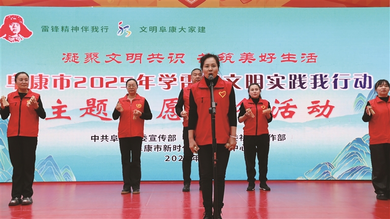 阜康市举行“雷锋精神伴我行 文明阜康大家建”学雷锋文明实践我行动主题志愿服务活动,阜新街道志愿服务队表演快板《十说文明新风》。□刘 媛摄