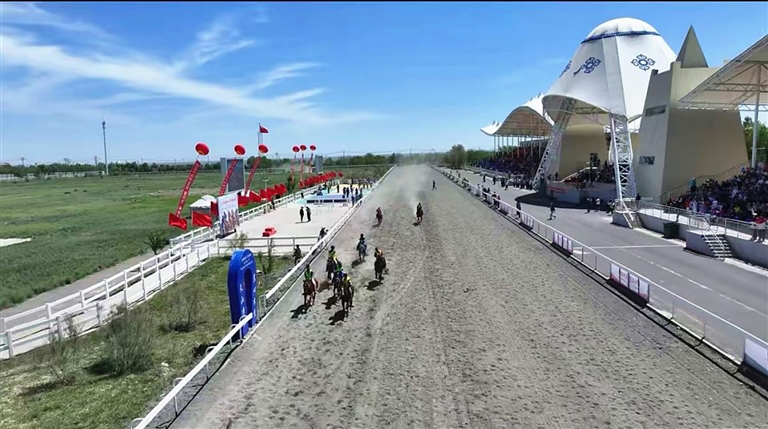 5月31日,木垒县举办“中国·新疆第五届骆驼产业展暨全疆赛马大会”。图为赛马大会比赛现场。□加尔斯摄
