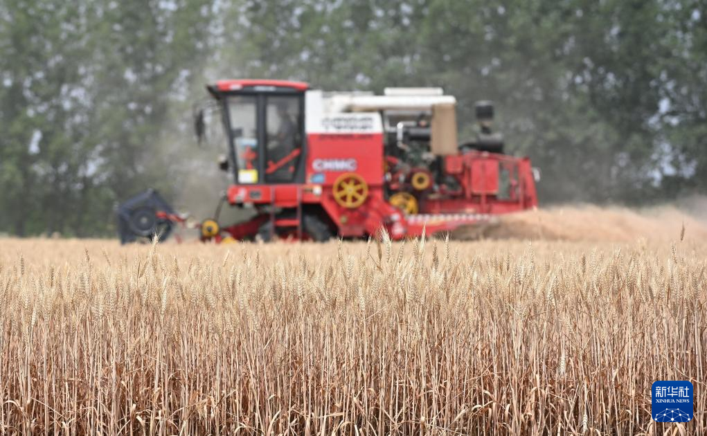 6月2日,农机手驾驶联合收割机在山东省聊城市茌平区贾寨镇草林张村麦田里收割小麦。新华社发(赵玉国摄)