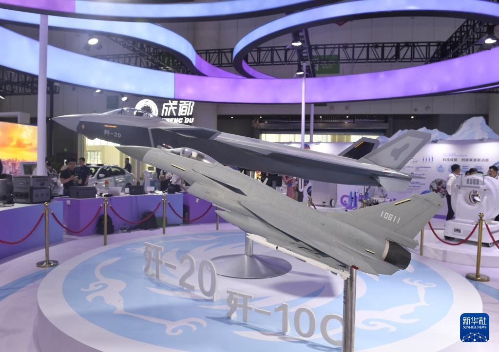 成都馆展出的歼20和歼10c模型(6月11日摄)。新华社记者 刘坤 摄