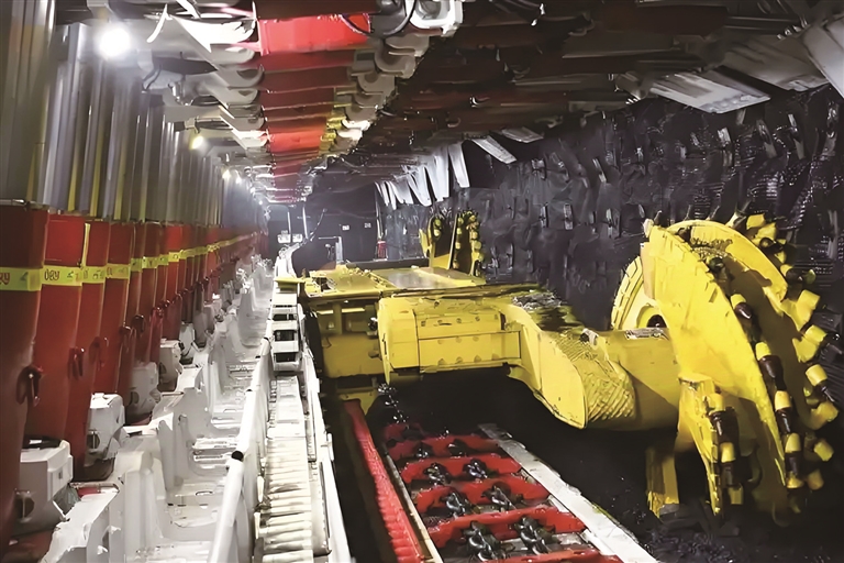 12月21日,国网能源新疆准东煤电有限公司准东煤田大井矿区二号煤矿自动化采煤设备高效运转。记者 常谊谊摄
