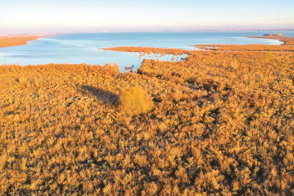 11月中旬,呼图壁县小海子湿地满目金黄,风景如画。俯瞰湿地,层林尽染,成群的野鸭在蓝天碧水间时而栖息觅食,时而展翅飞翔,和谐共生的生态美景令人陶醉。