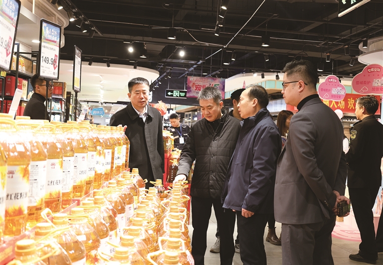 3月15日,抽检人员在汇嘉时代昌吉购物中心超市了解食用油的进货渠道及相关情况。记者 付小芳摄