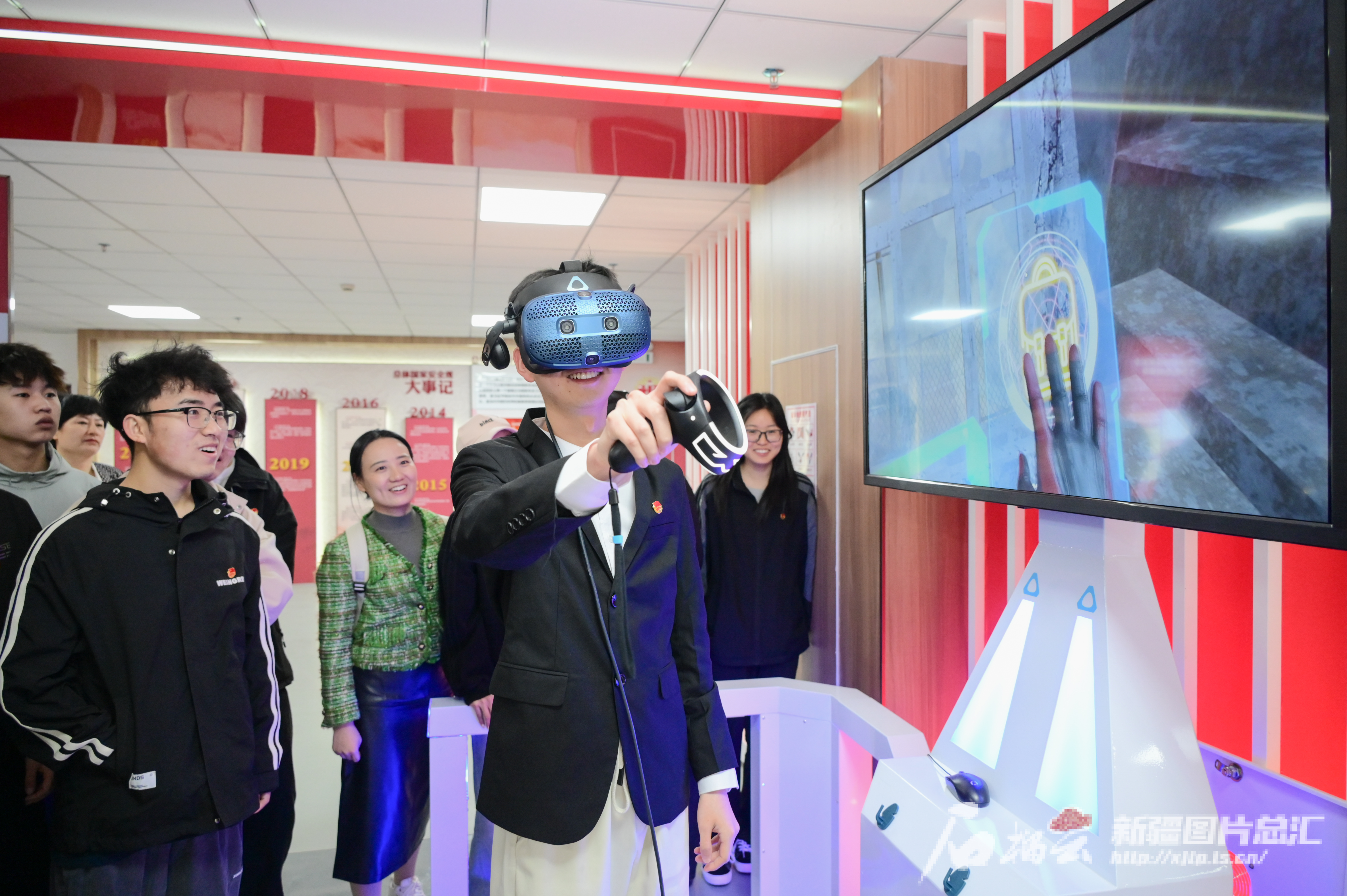 4月15日,在昌吉州总体国家安全观教育展馆,昌吉学院学生通过vr互动体验,学习国家安全知识。陶维明 摄