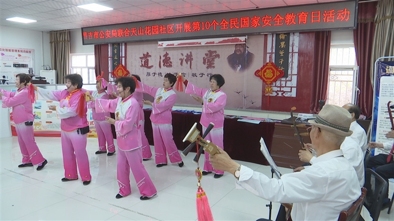 昌吉市张岩一家亲爱心团队的志愿者和社区文艺队将国家安全教育融入文艺节目中,表演了自编自演的新疆曲子《民法典》、快板《普法宣传》等节目。
