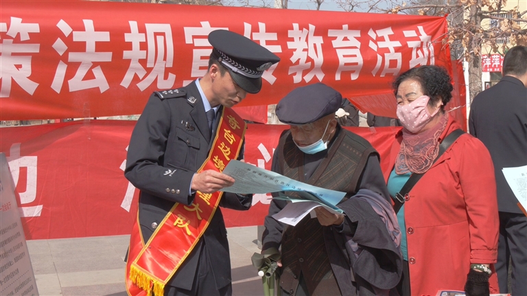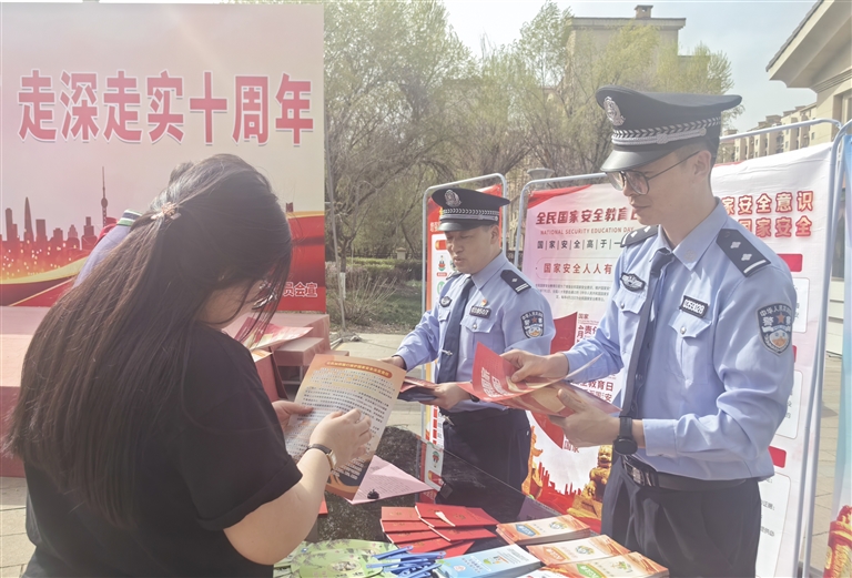 市公安局民警通过播放宣传片、发放宣传资料、布置展板、现场答疑及有奖问答等方式,向群众宣传《中华人民共和国国家安全法》《中华人民共和国反恐怖主义法》等法律法规。
