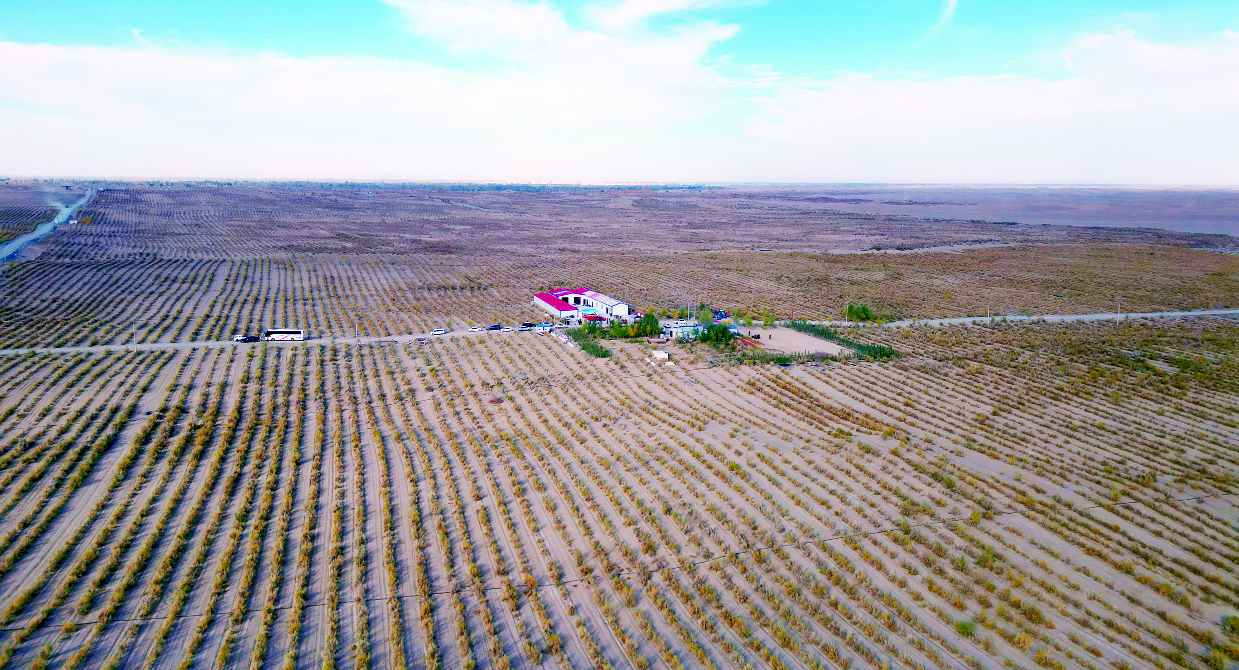 俯瞰且末县万亩有机肉苁蓉种植基地(无人机摄)。韩亮/摄